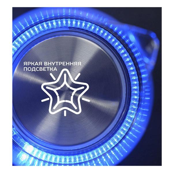 Длина сетевого шнура составляет 75 см. Емкость чайника — 1,7 л. Устройство оснащается элементом нагревания скрытого типа.