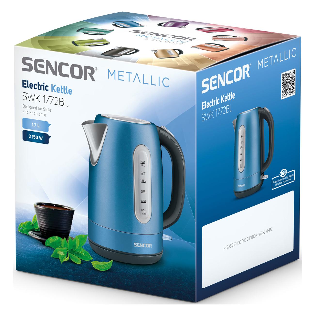 Электрочайник Sencor SWK 1772BL выполнен в объеме 1,7 л. Уровень воды определяется при помощи указателя. Фильтр снимается и очищается по мере необходимости. Дно сделано из нержавеющей стали, как и нагревательная спираль.