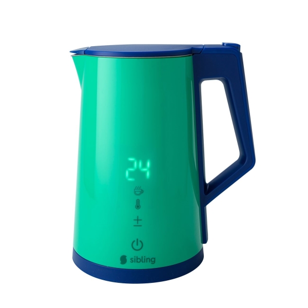 Электрочайник Sibling Powerspace-SK, синий/зеленый объемом 1,7 л произведен из комбинированных материалов: нержавеющей стали и пищевого пластика. Управлять чайником можно механически или через приложение (присутствует встроенный модуль Wi-Fi). Прибор можно включать по заданному расписанию или с использованием встроенного голосового помощника. У прибора несколько режимов нагрева воды от 40°C до 100°C.
