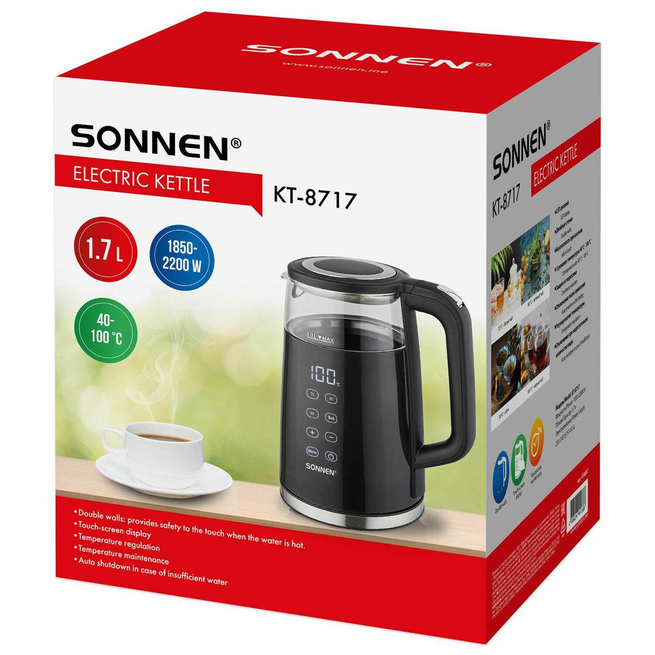 Вы можете купить Электрочайник Sonnen KT-8717 Black в магазинах М.Видео по доступной цене. Электрочайник Sonnen KT-8717 Black: подробное описание, фото и отзывы реальных покупателей, характеристики, возможность скачать инструкции и подобрать аксессуары.
