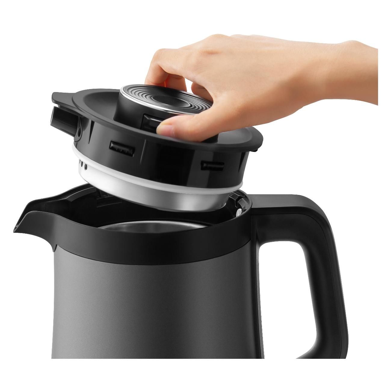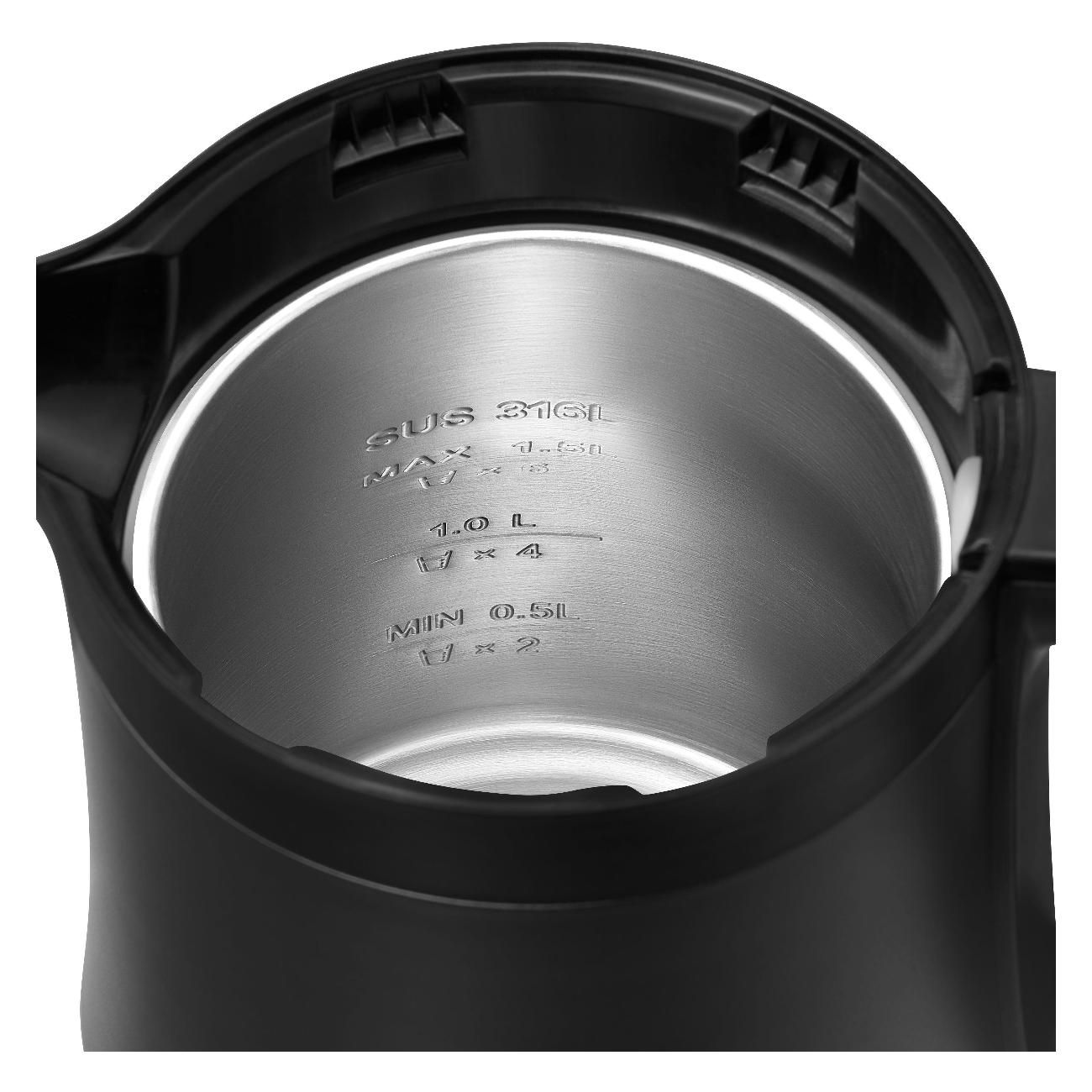 Закипает за 6 мин 40 сек. Достаточно тихий. Крышка закрывается с усилием, со звонким щелчком, не становится в пазы как надо, прям не понравилось это - неудобно. Мерной шкалы снаружи нет, чтоб увидеть сколько воды осталось, нужно опять открыть эту крышку. Тяжелый, даже пустой, не знаю как дети с ним справятся. После первого кипячения фильтрованной воды, остались на дне пятна -следы кипячения. На фото видно. Вернуть такой товар скорее всего не получится, получается оценивать можно только внешний вид). Взяли из-за дизайна и с ним по акции вышло дешевле, чем без него, можно сказать в подарок) 6000 на мой взгляд не стоит, разве что за бренд. Впечатления неоднозначны, пока кажется неудобным, если не привыкнем поедет на дачу)