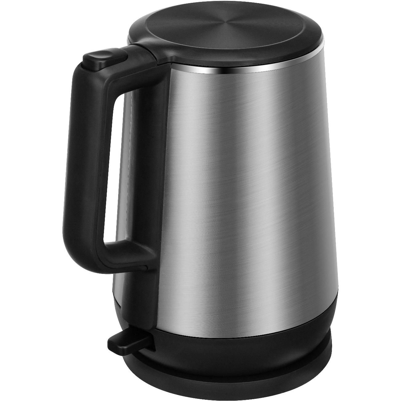 Габаритные размеры — 24,5х16х21,4 см. Потребляемая мощность — 2150 Вт. За безопасность использования чайника отвечает система отключения, которая срабатывает при закипании, снятии с платформы, отсутствии воды в резервуаре.