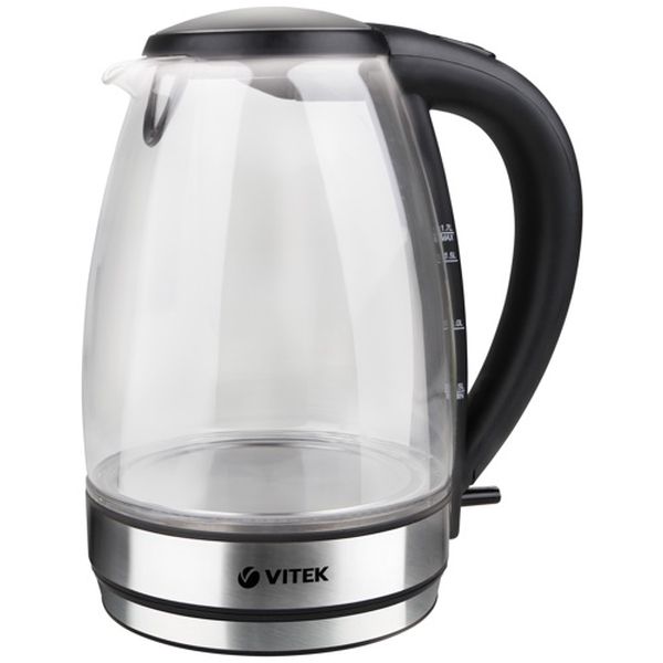 Электрочайник Vitek VT-7046 BK изготовлен в черном цвете, мощностью 2200 Вт. Длина сетевого кабеля — 75 см. Объем резервуара для воды составляет 1,7 л. Устанавливается чайник на платформу, вращающуюся на 360°. Скрытая спираль защищена от известковых отложений. Есть фильтр для воды, внутренняя подсветка, индикация включения и уровня воды. Управление осуществляется с помощью механической кнопки, расположенной в нижней части ручки. Корпус изготовлен из термостойкого стекла. Есть отсек для хранения сетевого шнура.