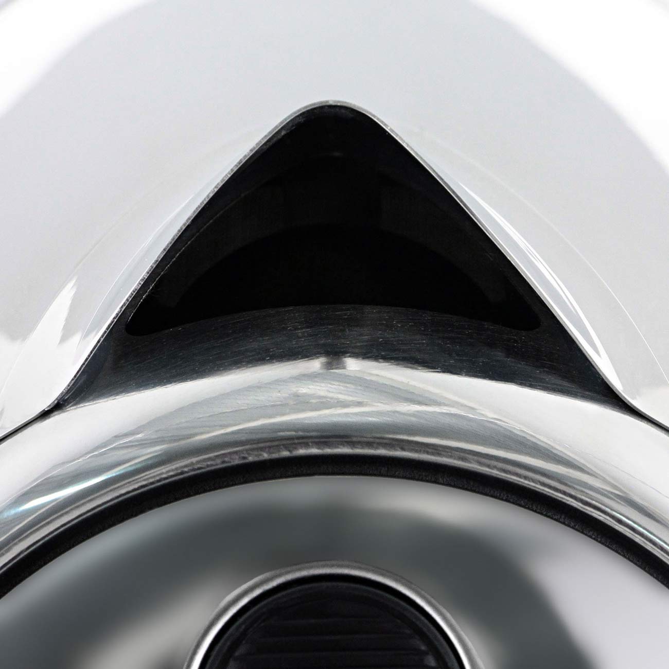 Блестящий хром и стекло корпуса выглядят стильно и современно. Такой чайник станет хорошим дополнением для минималистичного интерьера кухни.