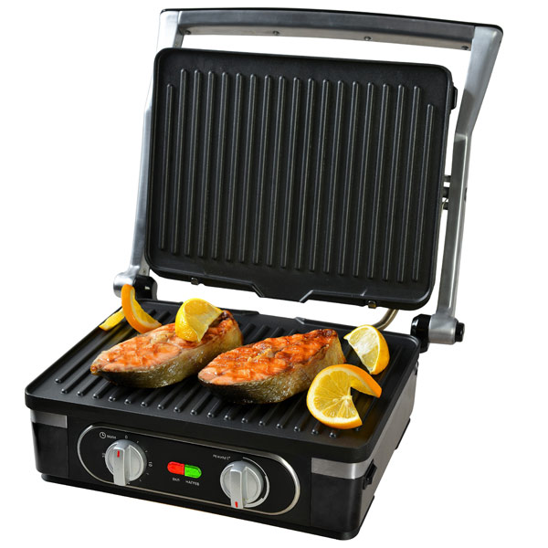 Готовьте диетические блюда с низкой калорийностью – гриль обходится без масла. Его регулируемые ножки и глубокие каналы позволяют сливать вытапливаемый жир во встроенные поддоны.