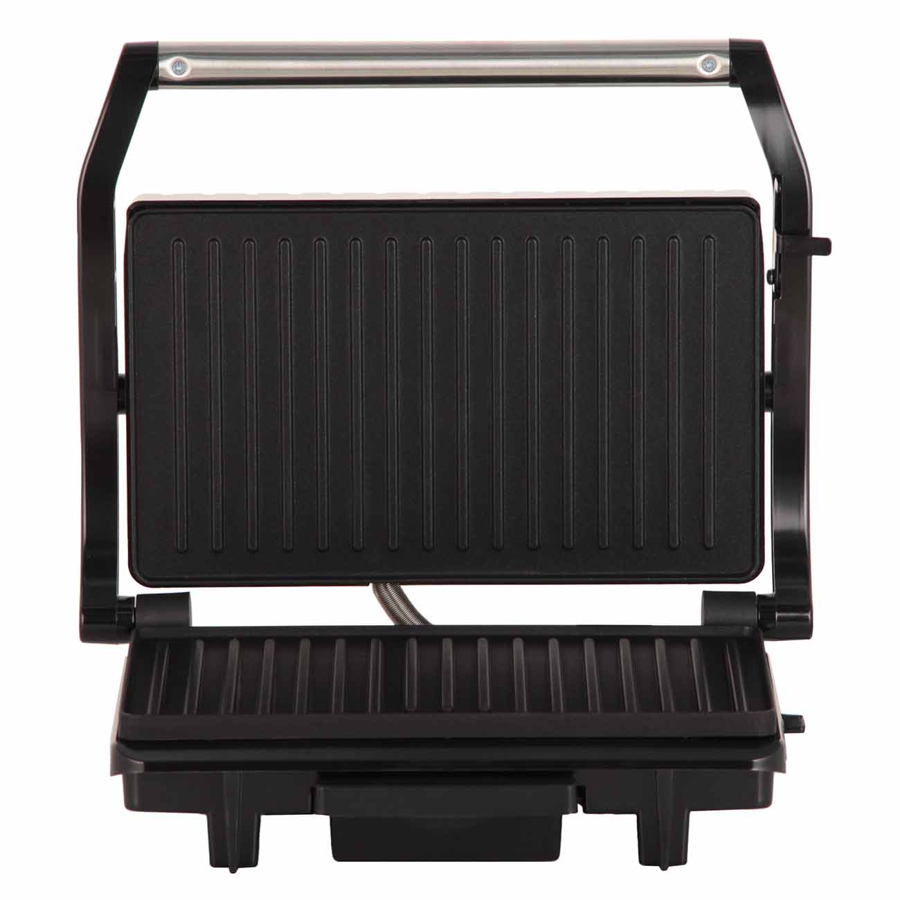 Ручка термоизолирована, поэтому прихватки не потребуются. Прорезиненные ножки придадут грилю устойчивость и не дадут ему скользить по столу. Безопасность обеспечивает эффективная система защиты от перегрева: она отключит устройство при риске поломки.