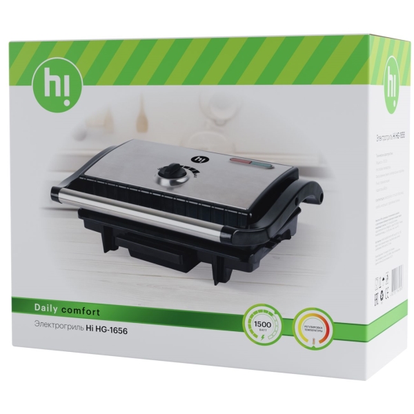 На электрическом гриле Hi HG-1656 вы сможете поджаривать мясо, птицу, колбаски, креветки, готовить горячие бутерброды и многое другое. Размер пластин 25 х 15,2 см, как правило, этого достаточно для двух человек.