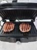 Муж давно хотел себе электрогриль, в этот Новый год решила ему не подарить. Как раз в магазине была хорошая скидка на данную модель. Она компактного размера, есть выбор мощности. Пробовали жарить стейк говядины с бекон, хлеб и яйца, все вышла шикарно и очень быстро. У данной модели если функция грили, которую опробовали для яичницы. Моется тоже легко, жир смывается на ура. Будем пробовать еще разные блюда.