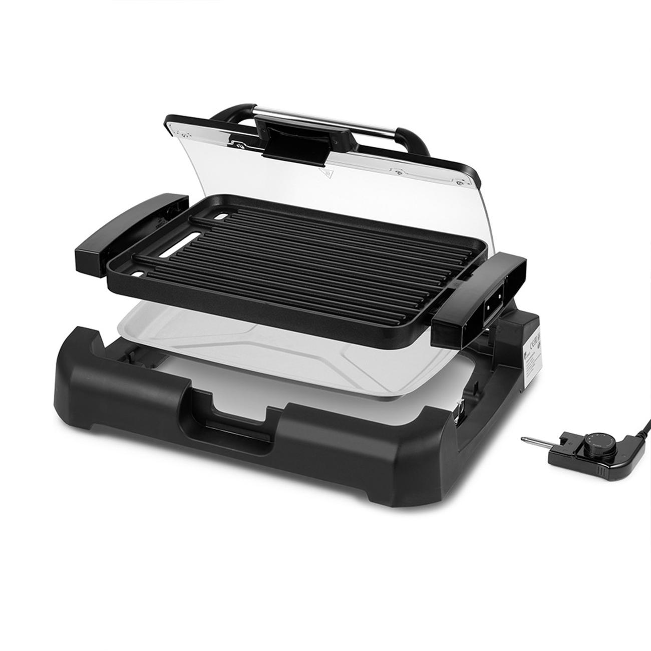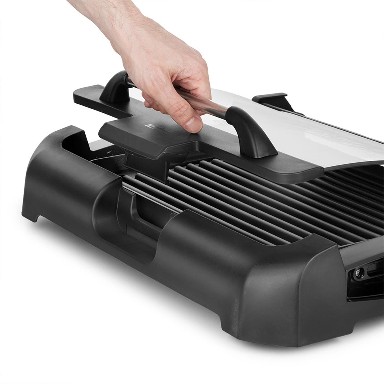 Для безопасности электрогриль снабжен системой автоматического отключения и защитой от перегрева. Прорезиненные ножки не позволяют устройству скользить по столу в процессе приготовления. Разборная конструкция электрогриля упрощает его чистку. Панель можно очистить салфетками. Жарочная и комбинированная поверхности входят в комплект. Размеры модели — 38,9х13,1х50,9 см, вес — 5,65 кг.
