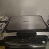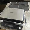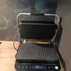 Удобство настройки и эксплуатации обеспечивают сенсорные кнопки и термоизолированная ручка для поднятия на 180° и опускания крышки. Индикация оповещает о готовности к работе, времени, оставшемся до конца программы. Жир стекает в отдельный лоток, который без труда извлекается для очистки. Корпус сделан из пластика и металла. Цвета — серебристый и черный. Размеры — 17х35,5х33,8 см. Вес — 6,03 кг.