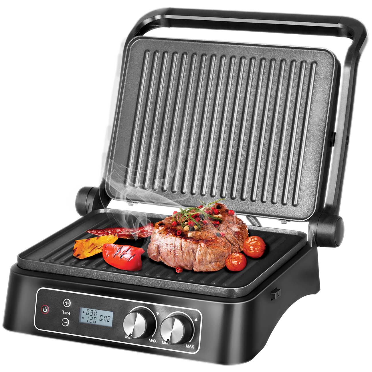 Техника мелкая у меня на кухне именно этой фирмы и все приборы радуют остановилась на ней, так же сравнивала с тефаль, но не зашла по дизайну даже мне. Пишу честно как есть: новогодние праздники, захотелось мяска, но на дачу ездить каждый раз не хочется зимой. Начала искать по отзывам не нашла ни чего путнего, и начала сама уже разбираться. Остановилась на этой модели так же была и дороже разница только что здесь крутилки, а в другой кнопки цена на 3000 больше и вся разница. Но эти крутилки один раз поставил какая нужна температура и все). Нагревает что низ что верх все качественно прожаривают, мясо стейк получается очень сочным 7мин и готова целая тарелка! Делала бургеры и хот-дог это что то вкусное! Овощи получаются отлично, каждый день пользуемся поставила на рабочую зону, а не в шкаф, нет ни каких брызгов все чисто, моются пластины без каких-либо трудностей, снимаются. Делали шашлык именно кусочками, все отлично! Рекомендую.