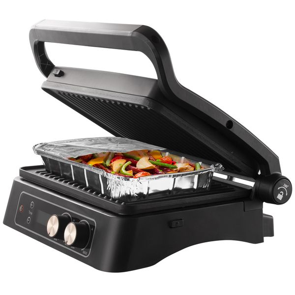 Рифлёные пластины снабжены качественным антипригарным покрытием, что не только в разы облегчает уход, но и даёт возможность не добавлять масло. Рабочие поверхности съёмные, как и поддон для сбора стекающего жира, – промывайте их под проточной водой с применением геля для посуды.