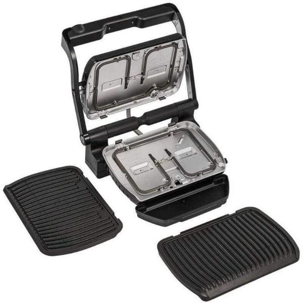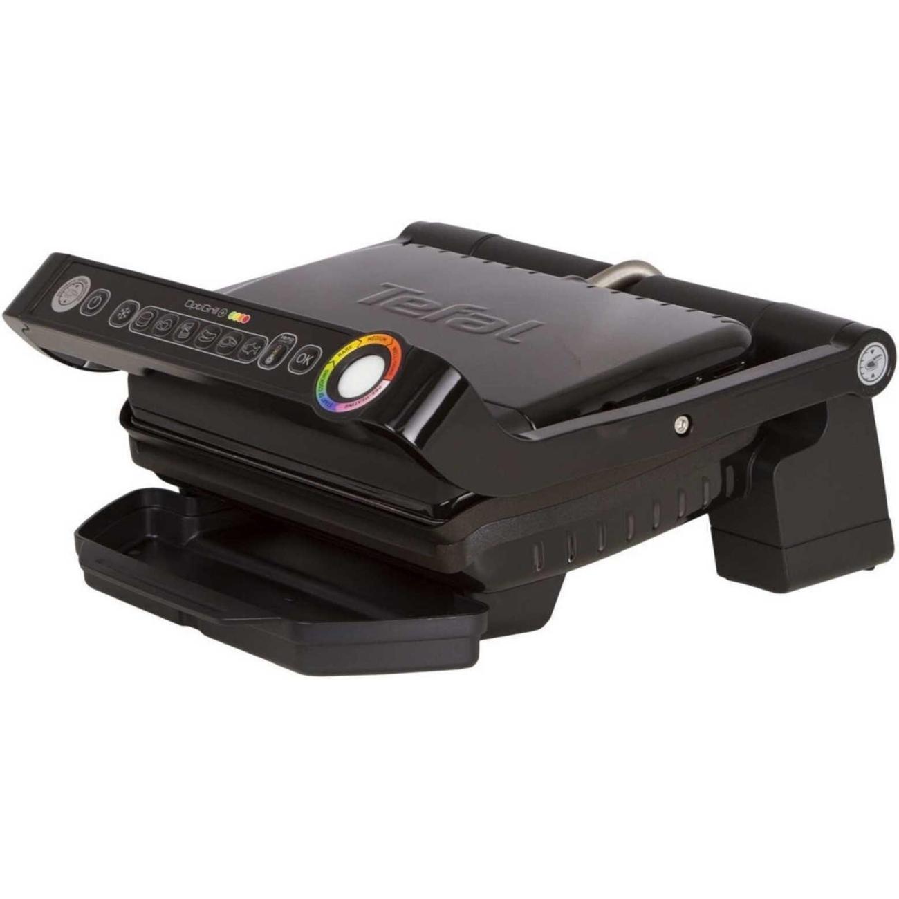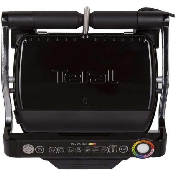 Электрогриль Tefal GC714834 самостоятельно определяет необходимую степень прожарки и толщину стейка. В процессе работы используется одна из шести автоматических программ. Рабочую поверхность устройства можно наклонить. В комплект включена насадка для запекания мяса. Узнать степень готовности можно при помощи индикатора, находящегося на корпусе. Дополнительно в конструкции сделан датчик приготовления. Внутри выполнено высококачественное антипригарное покрытие, благодаря которому поверхность очень легко очищается. Съемные элементы можно мыть в посудомоечной машине.