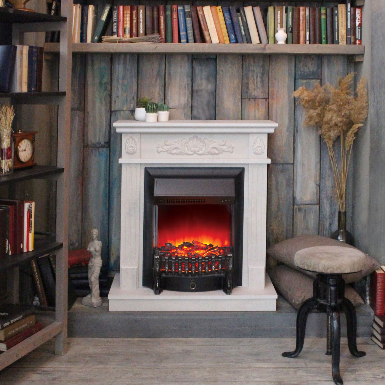 Электрический камин RealFlame Adelaida STD/EUG WT+Fobos-S BL размером 91x82x40 см предназначен в качестве декоративного элемента или обогрева комнаты площадью не более 15 м². С помощью пульта ДУ удобно регулировать уровень яркости, что обеспечивает максимально реалистичный вид. Устройство оборудовано нагревательным элементом, который позволяет поднять температуру в помещении за короткий срок.