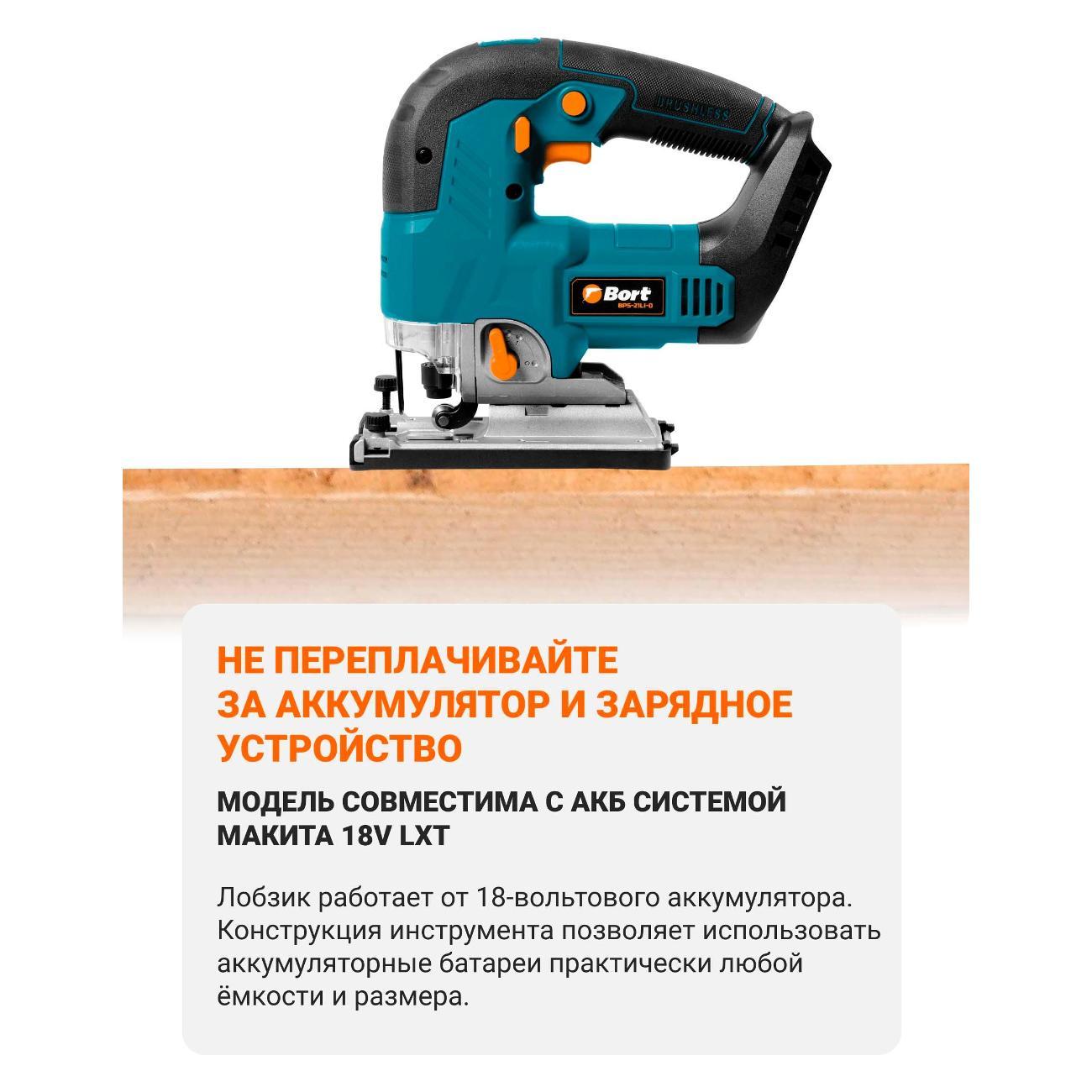 Аккумуляторный лобзик Bort BPS-21Li-0 оснащен современным бесщеточным двигателем, который обеспечивает высокую производительность и увеличенный ресурс. Инструмент предназначен для точных и быстрых пропилов в древесине и металле, работая от универсальной 18-вольтовой аккумуляторной платформы.