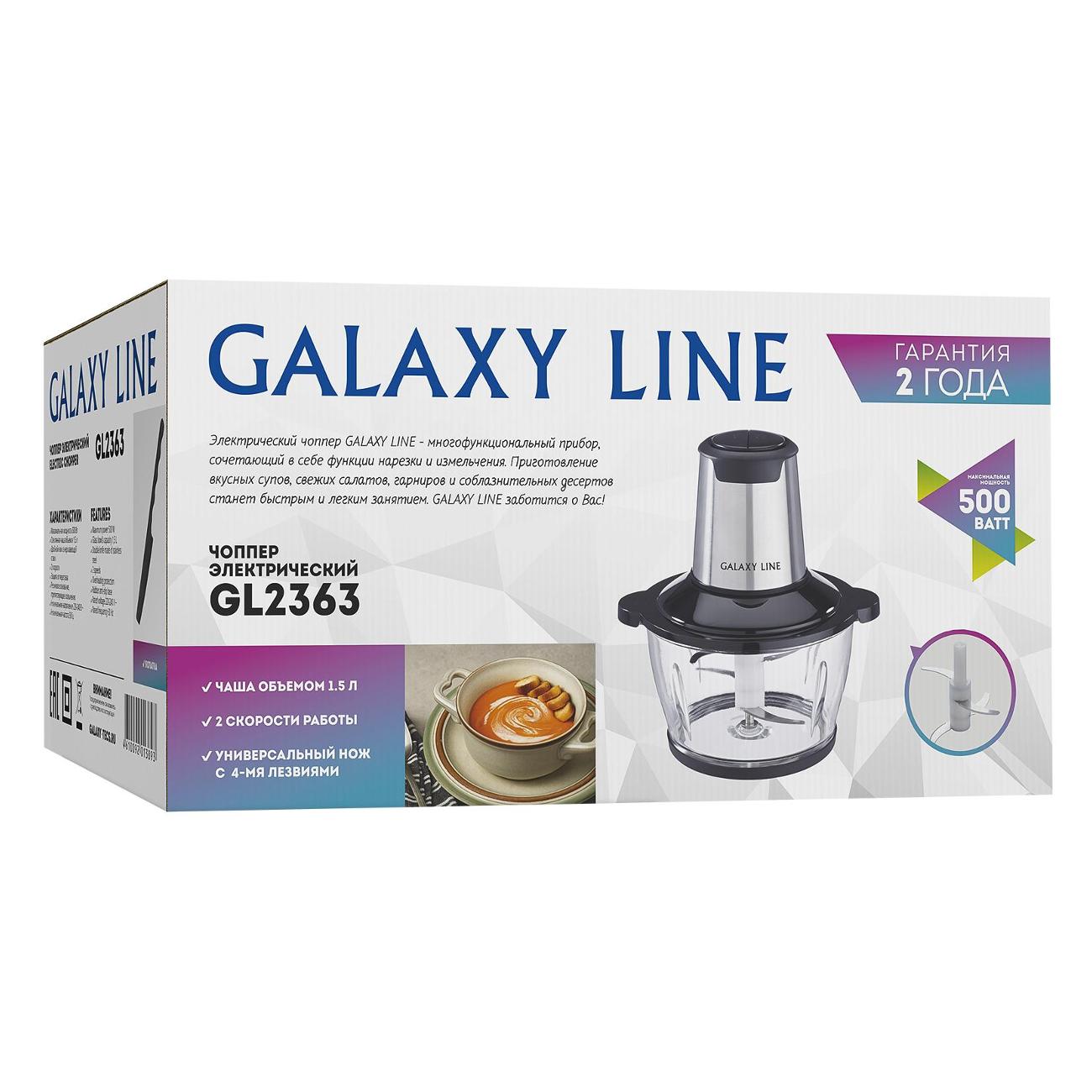 Электромельничка Galaxy Line GL2363 черного цвета с двумя скоростями оснащена системой защиты от перегревания и перегрузок. Способ управления — механический. Прибор работает от сети. Мощность — 0,5 кВт. Длина шнура — 75 см. Габариты модели — 18х22х33 см. Вес изделия — 1,99 кг. Корпус сделан из легкого гигиеничного пластика и металла, устойчивого к образованию коррозии, чаша — из закаленного стекла. Прорезиненное донышко предотвращает скольжение. Объем чаши составляет 1,5 л. Присутствует импульсный режим.