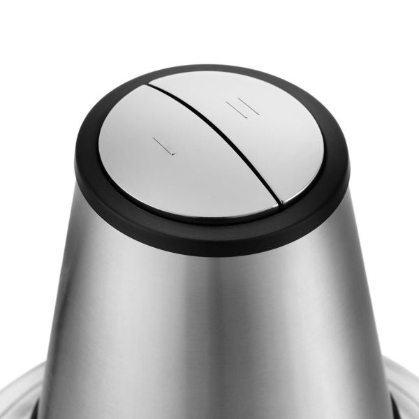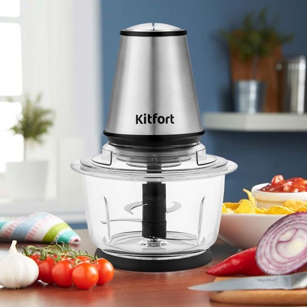 Электрический измельчитель Kitfort КТ-1389 оснащен двигателем мощностью 400 Вт. Доступно два скоростных режима, которые переключаются нажатием на соответствующую кнопку. Клавиши расположены в верхней части прибора. Многоуровневый ножевой модуль позволяет не только нарезать продукты, но и приготовить пюреобразную смесь. В комплектацию входят защитные кожухи для лезвий.