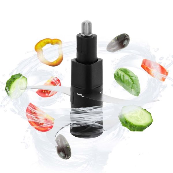 Мини-комбайн выполнен из нержавеющей стали и пластика. Основание дополнено прорезиненной вставкой, предотвращающей скольжение. Модель отличается компактным размером 18х18х15,5 см и небольшим весом, равным 1,8 кг.