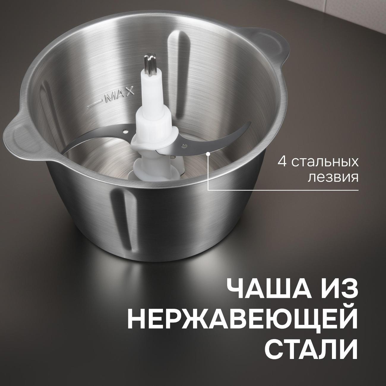 Хорошая вещь, измельчил мясо в фарш за секунду, но одну луковицу не смогла измельчить, т.к маленькое количество продукта не дошло до нижнего ножа, лучше класть побольше. Удобен в использовании. Я довольна, спасибо.