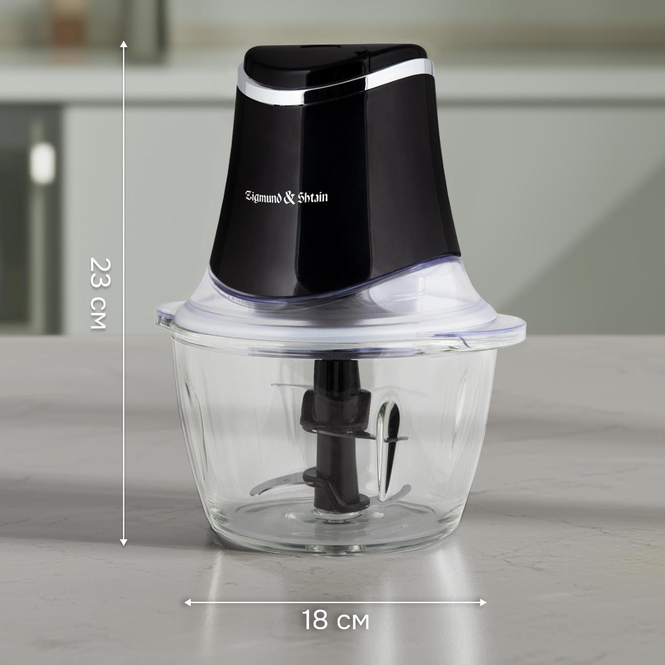 Электрический измельчитель Zigmund & Shtain CH-33 R черного цвета оснащен импульсным режимом. Два острых ножа сделаны из стали с антикоррозийными свойствами, долго держат заточку. Если при сборке допущены ошибки или неплотно закрыта крышка, включается блокировка. Чаша объемом 1,2 л изготовлена из закаленного стекла. Габариты модели — 25х18х18 см. Вес изделия — 2,02 кг. Мощность прибора составляет 0,5 кВт. Устройство работает от сети. Длина шнура — 1 м. Прозрачная пластиковая крышка позволяет контролировать процесс.