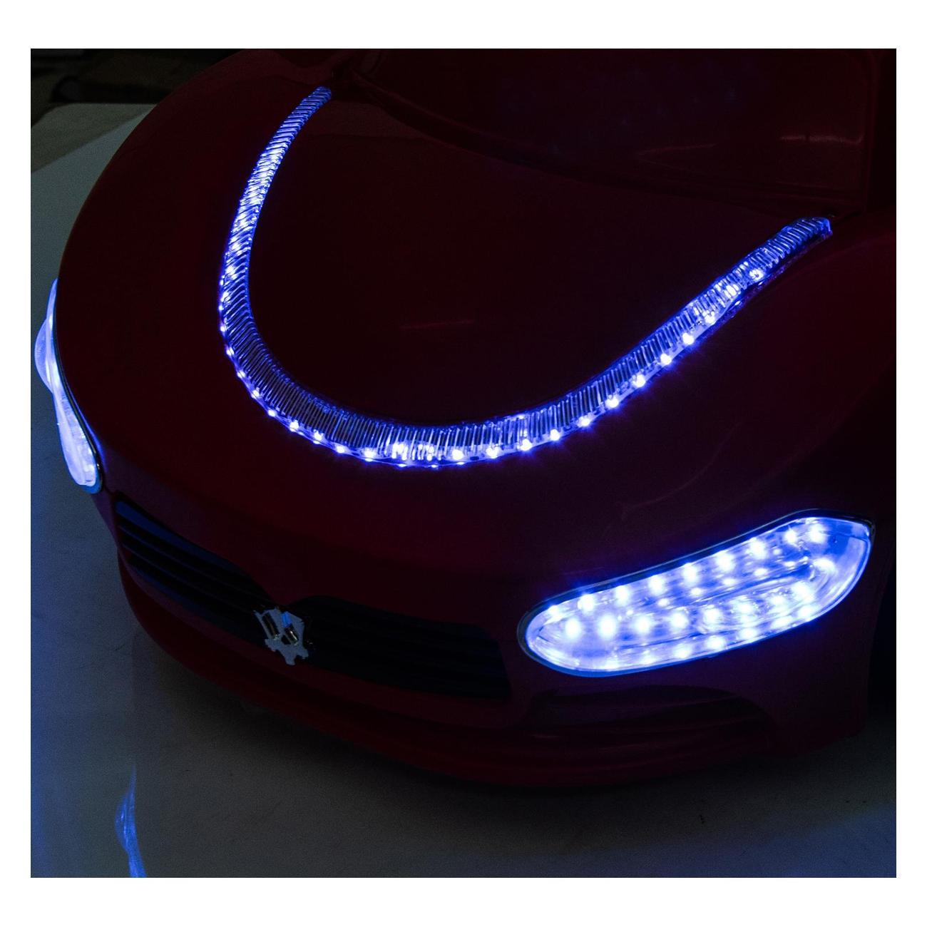 Машинка прикольная. АКБ была заряжена, что уже упростило проверку дома. Пришла в коробке, частично разобранной. Нужно прикрутить капот, сиденье болтами и руль гайкой, что в комплекте; подсоединить несколько проводов (на руле и под сиденьем). Колеса и колпаки тоже устанавливаются сборкой. Технически пришла исправной, функции по характеристикам выполняет, громкость звуков регулируется, управление с пульта присутствует. Пластик не тонкий. Достаточно просторная, но для одного ребенка. Блок питания с индикатором. Сколько до полной зарядки-разрядки еще не знаю. В общем, все понравилось, и мне, и ребенку. Цена для такой прикольной дорогой игрушки лояльная. Мои ожидания вполне оправдались.
