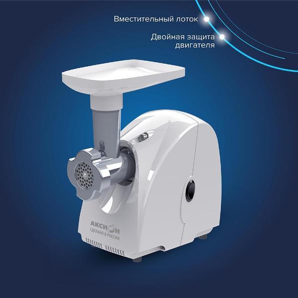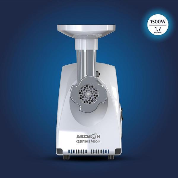 Электромясорубка «Аксион» М32.03 номинальной мощностью 230 Вт. При блокировке двигателя параметр увеличивается до 1500 Вт. Производительность устройства составляет 1,7 кг/мин. Предельный уровень шума во время эксплуатации — 79 дБ. Количество скоростей — одна.