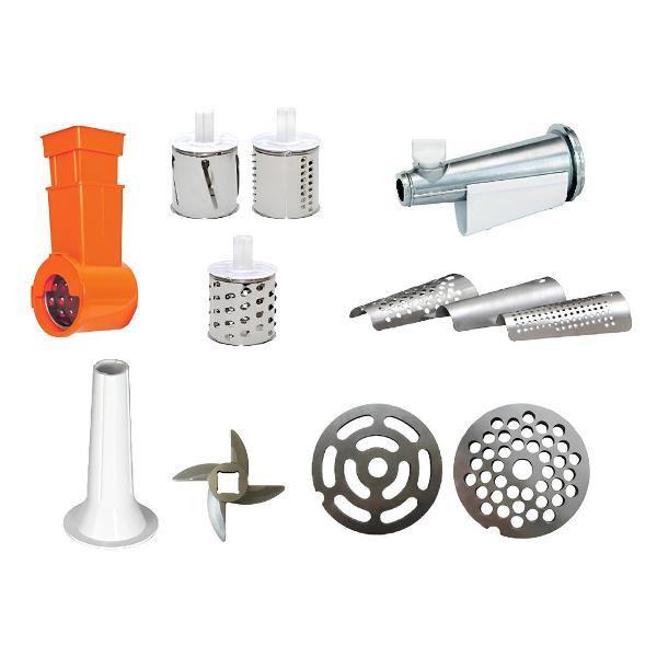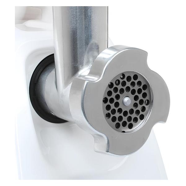 Мощность: номинальная — 230 Вт, при блокировке двигателя — 1500 Вт. Функция выключения при перегреве защищает мотор и продлевает срок службы. В набор поставки входят кожух, пластиковая крышка-лоток, три насадки. Съемный нож выполнен из стали, шнек — из алюминия. Основание оснащено прорезиненными ножками, верхняя часть — компактной ручкой для удобства транспортировки. Размеры — 17х24,5х24,4 см. Вес — 5,1 кг.