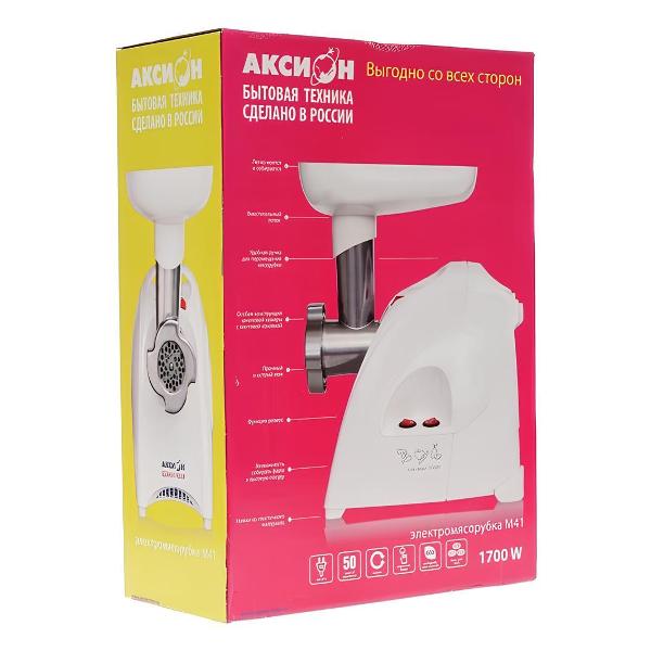 Электромясорубка «Аксион» М 41.03 обеспечивает быстрое и эффективное перемалывание мяса. Управление моделью осуществляется посредством механического переключателя. Модель функционирует от сети с напряжением 220-230 В. Небольшой уровень шума обеспечивает комфортные условия даже в вечернее время. Устройство мощностью 1700 Вт обеспечивает быструю и эффективную работу. Благодаря этому перемалывает до 2 кг в минуту продуктов.