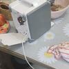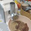 Материал, из которого изготовлены корпус и лоток, — ABS-пластик. Съемный нож сделан из нержавеющей стали. В комплект входит насадка для колбас, для хранения аксессуаров есть специальный отсек, а для переноски — ручка.