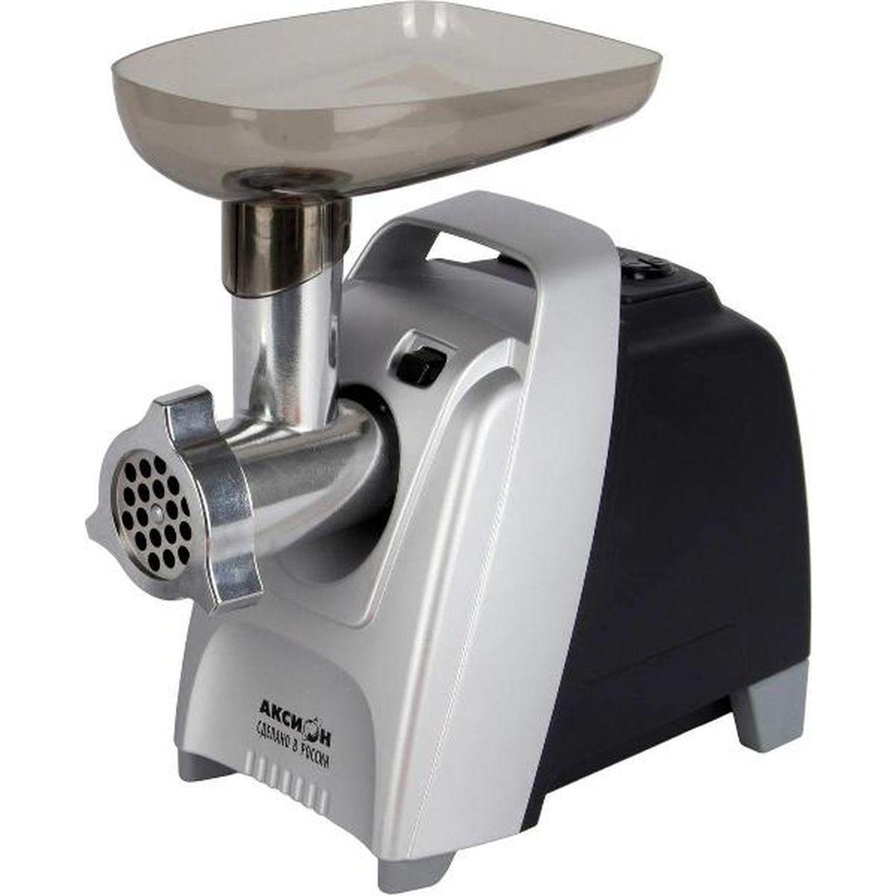 Электромясорубка «Аксион» М61.03 — модель в пластиковом корпусе мощностью 300 Вт, которая дает возможность перерабатывать в фарш много мяса. Производительность модели составляет 4 кг/мин. Устройство поддерживает возможность обратного хода для освобождения от застрявших мясных жил. Уровень шума в процессе эксплуатации не превышает 76 дБ. В комплект входят решетка с диаметром отверстий 4,9 мм для получения фарша, овощерезка.