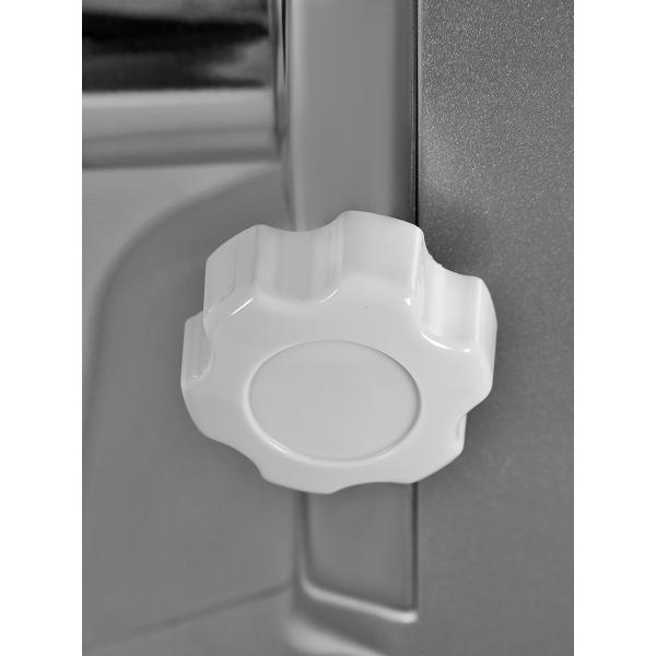 Медный мотор снабжен системой принудительного охлаждения и блокировки при возникновении перегрузки. Корпус выполнен из прочного пластика, прорезиненные ножки предотвращают скольжение по столу.