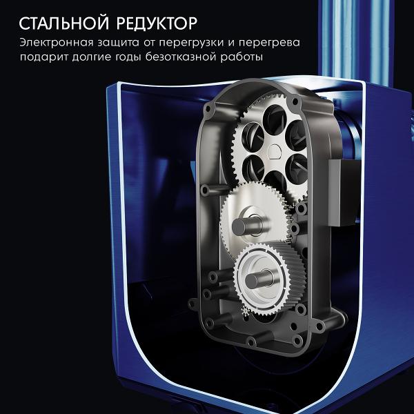 Электромясорубка Dauken FW2000 устойчиво держится на столе благодаря ножкам с прорезиненным покрытием. Модель весом 5,5 кг, размером 22х23х18 см потребляет до 0,7 кВт электроэнергии и управляется механическим переключателем. Опцией реверса можно извлечь застрявшие продукты. Удобный широкий лоток легко снимается и устанавливается.