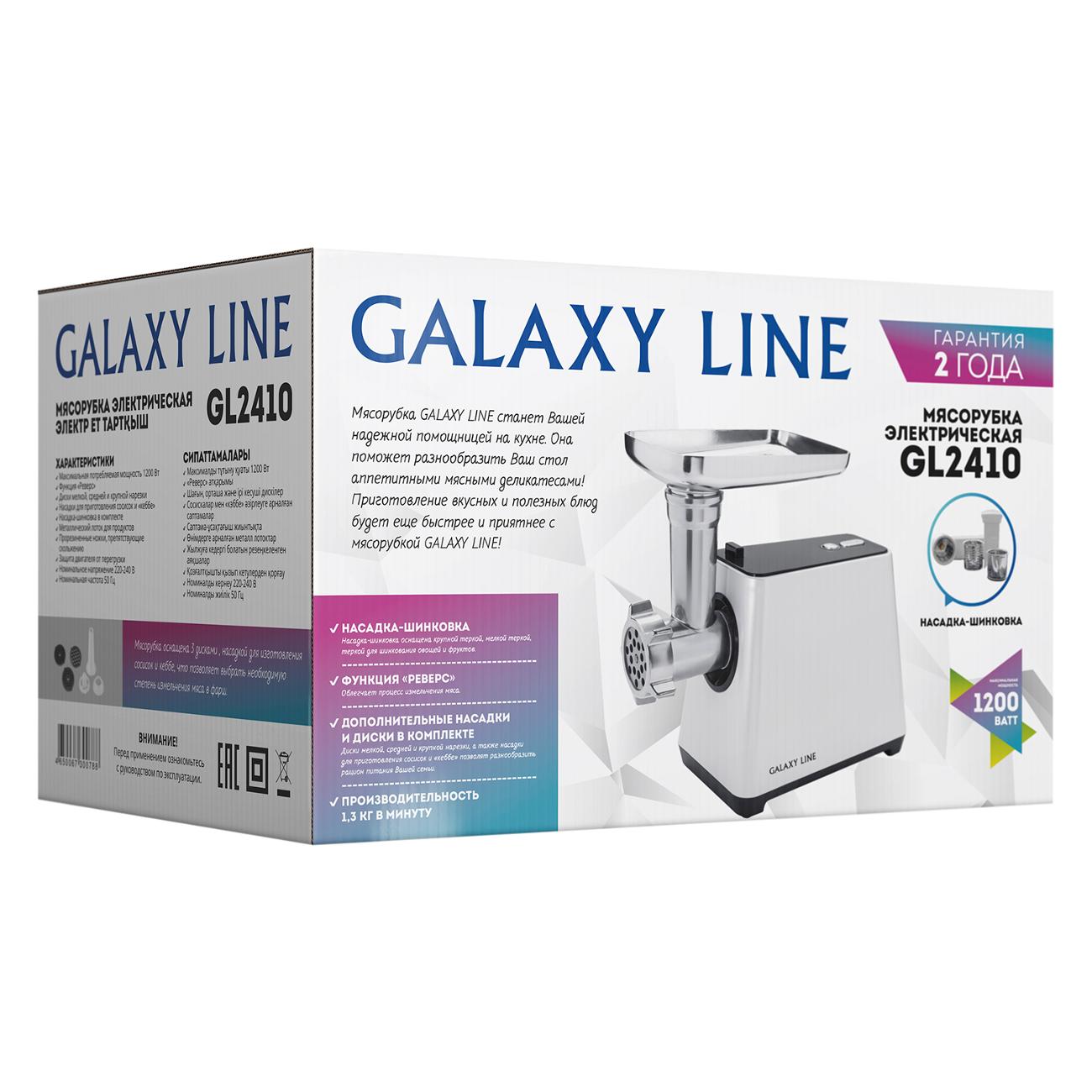 Электромясорубка Galaxy Line GL2410 поставляется в комплекте с дополнительными насадками для регулировки толщины помола. Устройство можно использовать для создания колбас и сосисок в домашних условиях. Максимальный уровень шума в процессе работы не превышает 24 дБ. Подключается к бытовой электрической сети, потребляемая мощность составляет не более 1200 Вт.