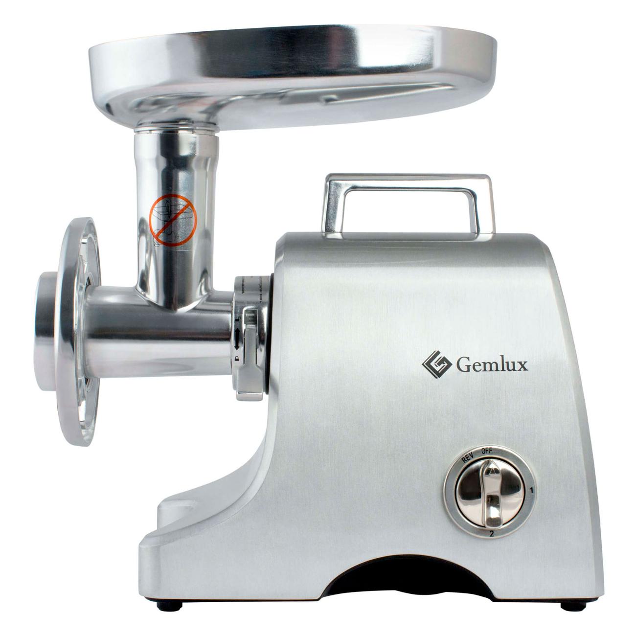 Электромясорубка Gemlux GL-MG5PRO серебристого цвета обладает габаритами 38,2х17х33,5 см и массой 5,7 кг. В комплекте поставляется крышка-лоток. Устройство оснащается системой отключения при перегреве. Корпус изготавливается из алюминия, ручки — из металла. У модели съемная конструкция ножа. На дне размещаются прорезиненные ножки.