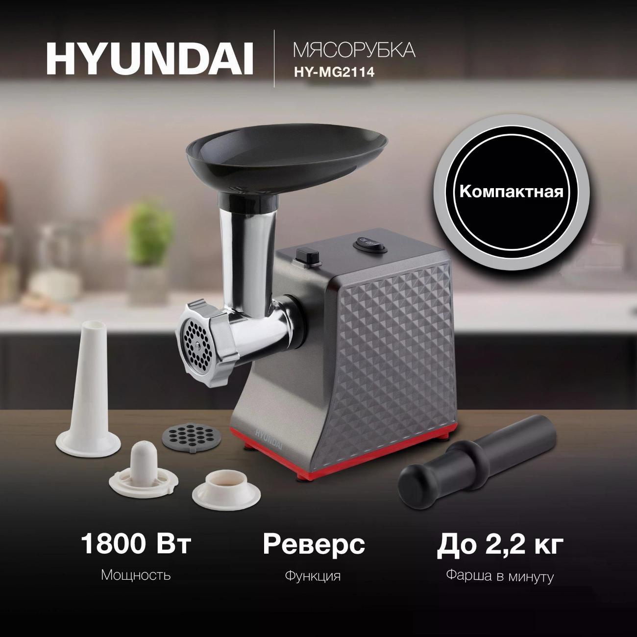 Вы можете купить Электромясорубка HYUNDAI HY-MG2114 в магазинах М.Видео по доступной цене. Электромясорубка HYUNDAI HY-MG2114: подробное описание, фото и отзывы реальных покупателей, характеристики, возможность скачать инструкции и подобрать аксессуары.