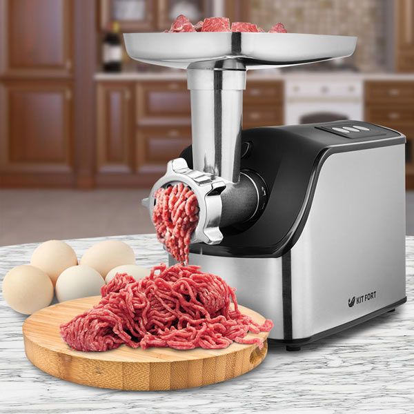 Мясорубка Kitfort KT2103 мощная помощница на моей кухне. Мясорубка тихая и очень быстрая, легкая, компактная и с приятным дизайном, отлично справляется с мясом и другими ингредиентами для приготовления фарша. Работает стабильно, не застревает, нож острый и сделан из нержавеющей стали. Огромный плюс, что есть две скорости прокручивания, а так же хотелось бы сказать отдельное спасибо за функцию реверса, хорошая функция и очень помогает в работе, три металлические насадки на любой вкус и на любое блюдо, но я предпочитаю насадку со средним диаметром отверстий, фарш получается изумительный, вся семья довольна! Моется мясорубка довольно легко, что я считаю тоже огромным достоинством. Самая мощная, тихая и достаточно бюджетная Мясорубка.