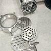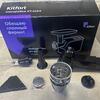 Электромясорубка Kitfort КТ-2104, черная с элементами цвета нержавеющей стали, обладает корпусом из пластика и металла, оснащенным устойчивыми прорезиненными ножками. В комплекте поставляются шнек и нож из нержавеющей стали, алюминиевый лоток, пластиковый толкатель и восемь насадок. В наличии овощерезка с насадками для терки и шинковки. Для приготовления фарша предусмотрены три сетки размером 3 мм, 5 мм и 8 мм.