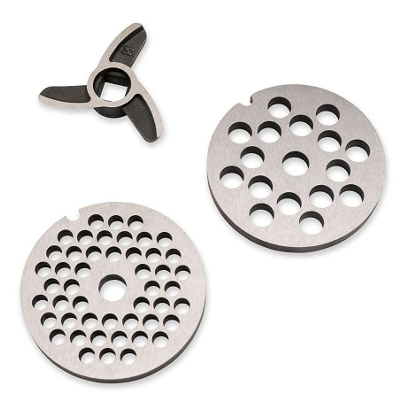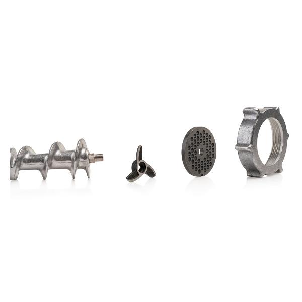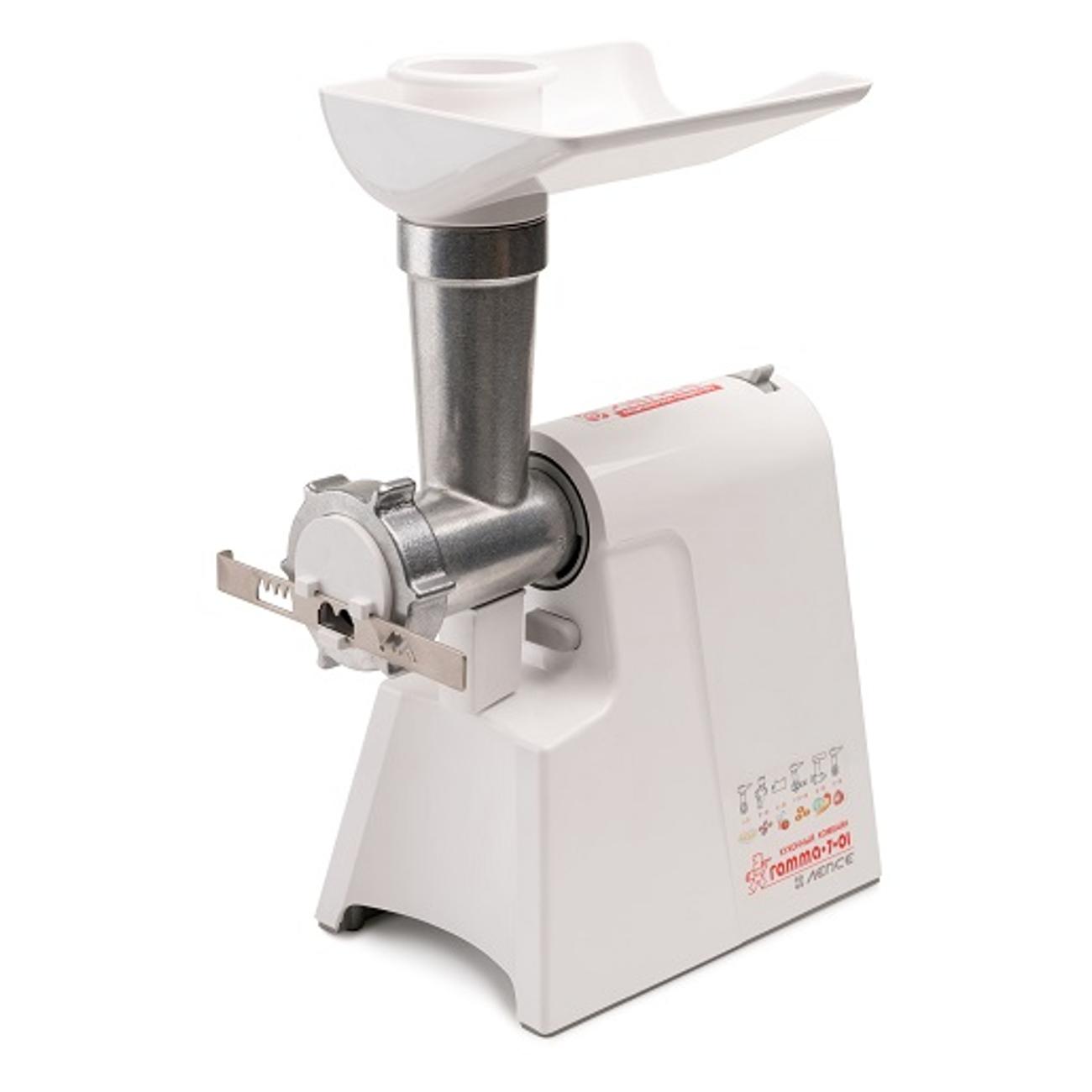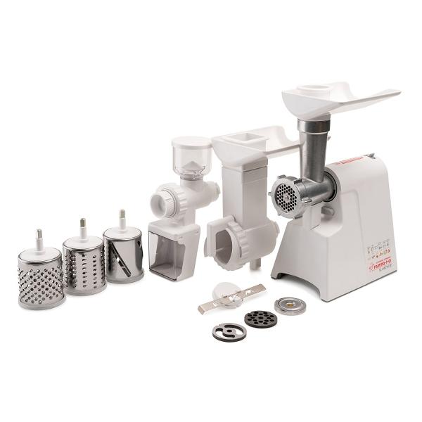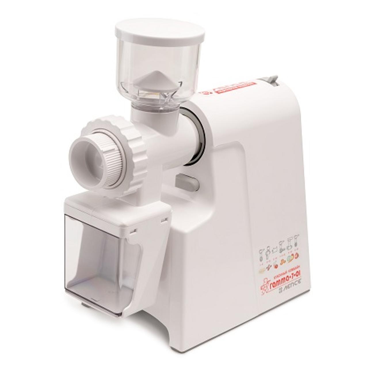 Электромясорубка «Лепсе» «Гамма» 7.1 в белом цвете мощностью 700 Вт способна переработать до 700 г мяса в минуту. В комплекте — три решетки (диаметр отверстий 3 мм, 4,4 мм, 7 мм), три насадки для шинковки и натирания овощей и три насадки для теста.