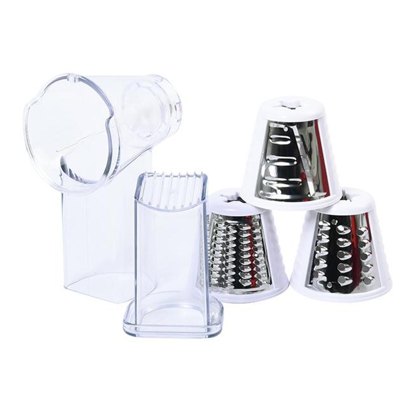 Номинальная мощность прибора составляет 500 Вт, мощность при блокировке вала — 1500 Вт. Мясорубку перерабатывает до 1,6 кг сырья в минуту. Корпус прибора изготовлен из пластика. Ножки прорезиненные, нескользящие. Лоток, шнек и нож произведены из металла. В комплект входит восемь насадок, включая овощерезку, шинковку, соковыжималку, терку, насадку для приготовления кебе.