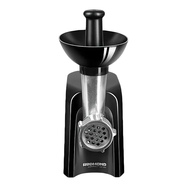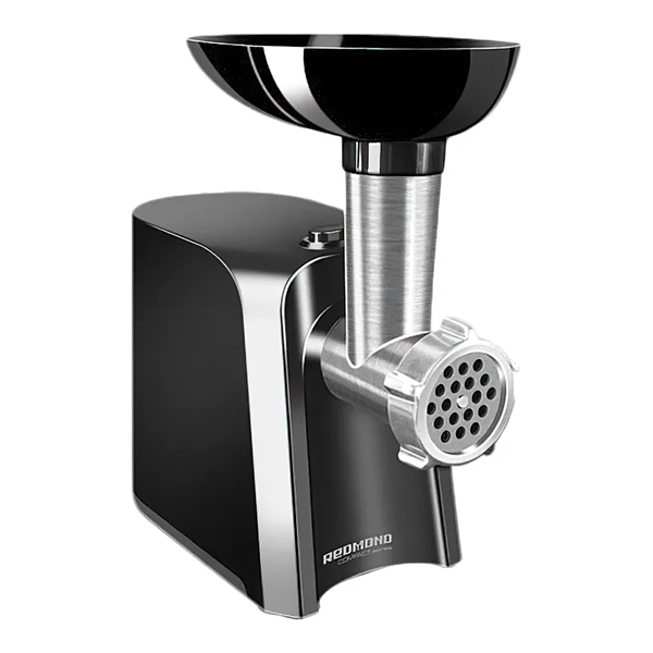 Электромясорубка Redmond RMG-1223 — устройство в корпусе черного и серебристого цветов, оснащенное одной скоростью и функцией реверса. Последний позволяет изменить направление движения, чтобы извлечь застрявшие куски мяса. Производительность устройства достигает 1,5 кг/мин. Номинальная мощность модели — 300 Вт, при блокировке электромотора — 1000 Вт. В набор входят две насадки, в том числе для приготовления колбасы и кеббе. Лоток изготовлен из пластика, съемный нож — из нержавеющей стали.