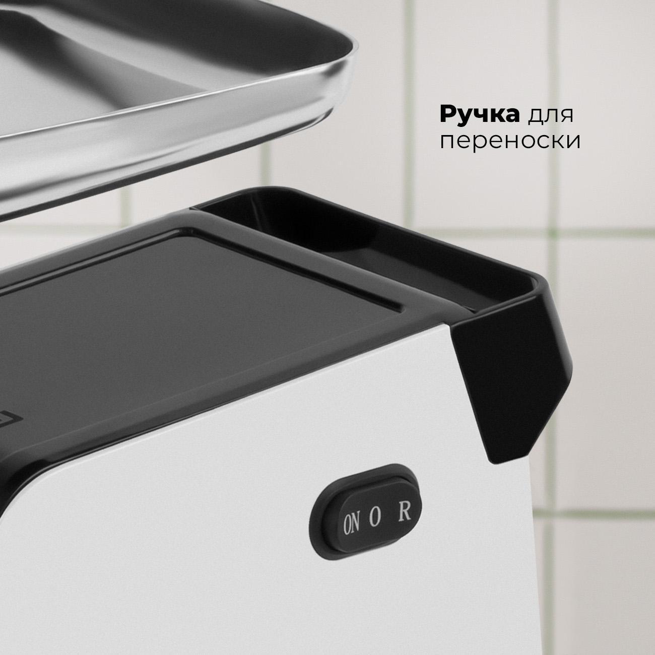 Прорезиненные ножки исключают вибрацию и скольжение на поверхности стола. На корпусе предусмотрена ручка для переноса прибора.
