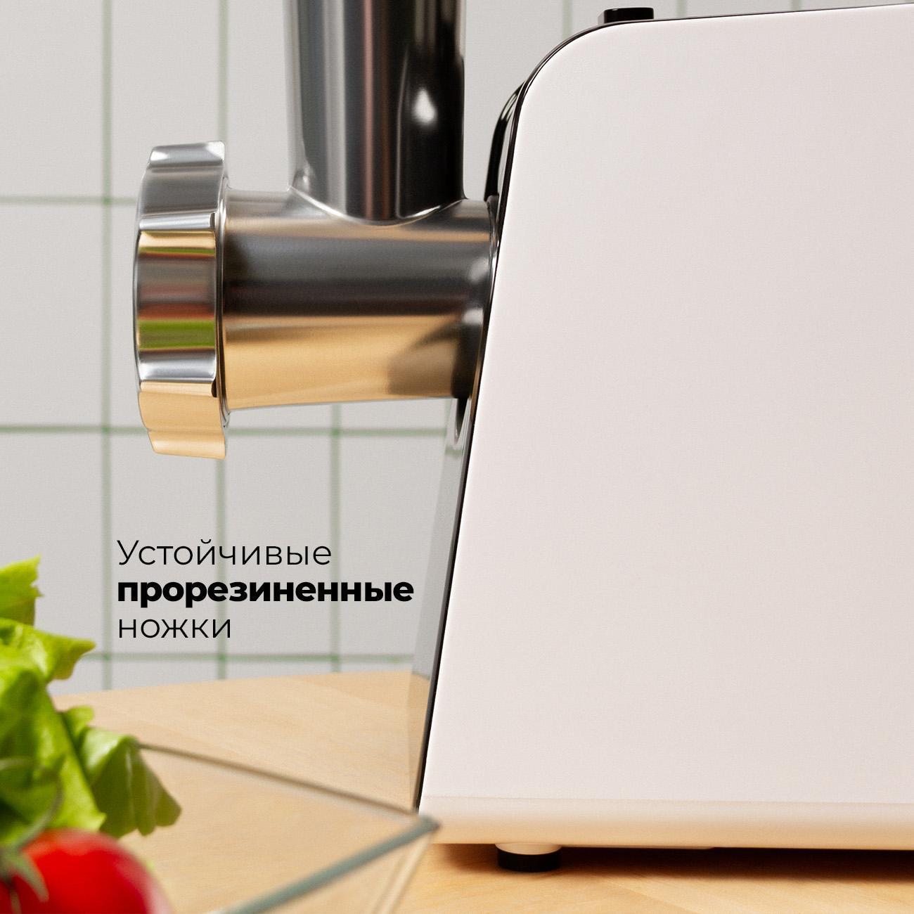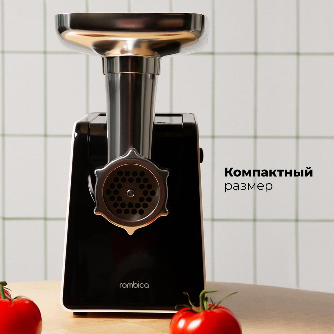 Электромясорубка Rombica MGR-105 позволит приготовить фарш и сформировать домашнюю колбасу или кеббе. Устройство справляется с большими объемами продуктов благодаря эффективной конструкции и насадкам.