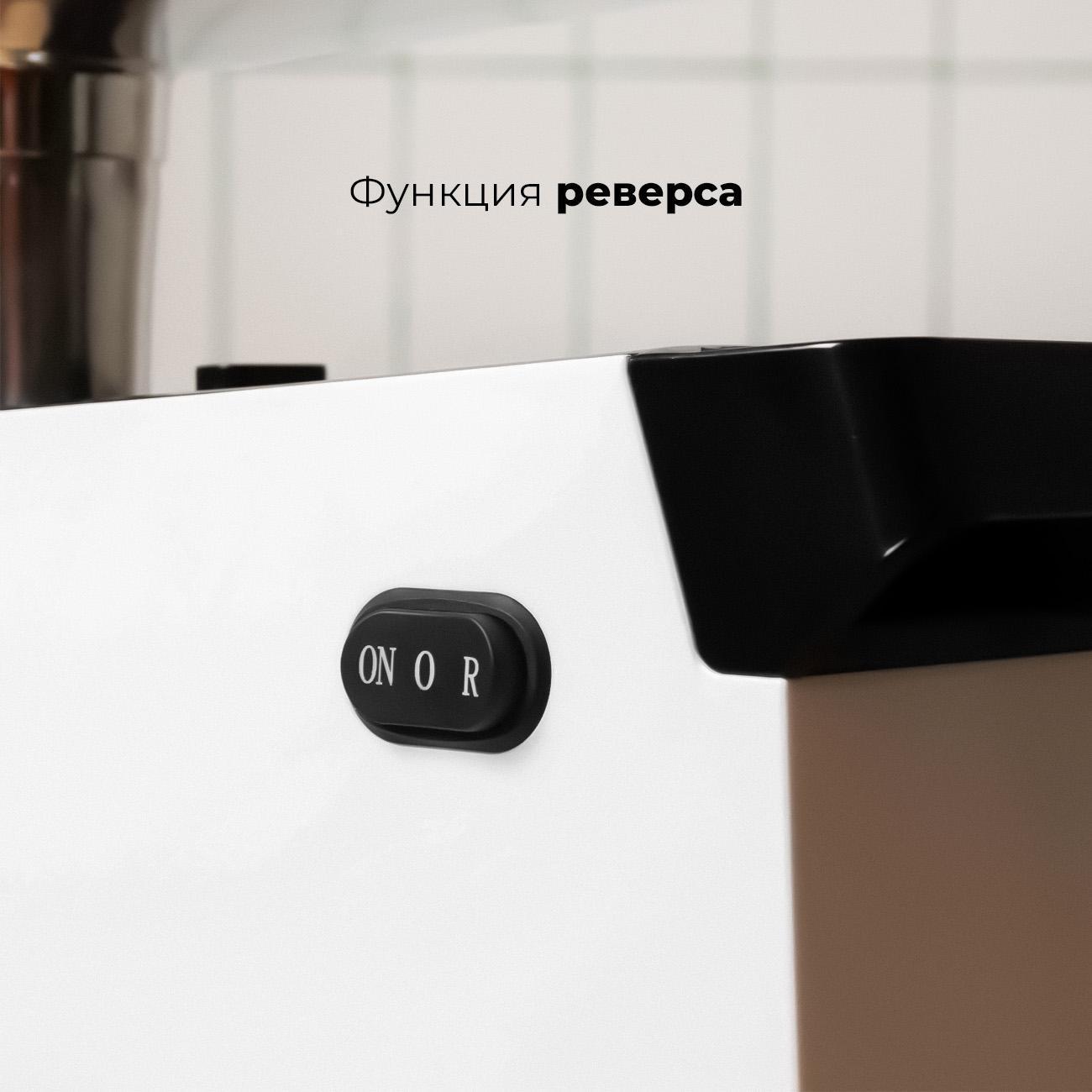 Обратное вращение шнека активируется для устранения заторов. За счет возврата застрявших волокон мяса в зону обработки устраняется необходимость ручной очистки во время работы.