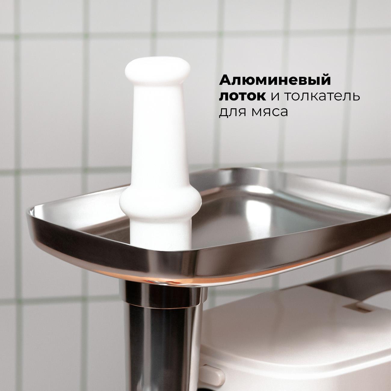Скорость обработки достигает 2,5 кг мяса в минуту, что экономит время при готовке больших порций.