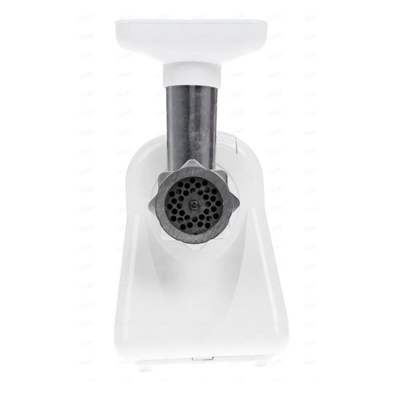 В набор поставки входит одна насадка, компактность хранения которой обеспечивает специальный отсек. Нож изготовлен из нержавеющей стали. Шнек сделан из металла. Корпус выполнен из пластика белого цвета. Камера разбирается и очищается под струей проточной воды. Габариты — 23,5х14,2х21 см. Вес — 2,1 кг.
