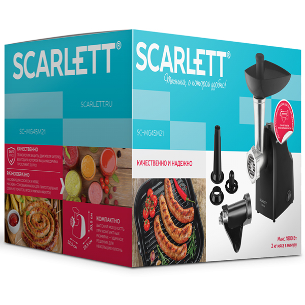 Вы можете купить Электромясорубка Scarlett SC-MG45M21 в магазинах М.Видео по доступной цене. Электромясорубка Scarlett SC-MG45M21: подробное описание, фото и отзывы реальных покупателей, характеристики, возможность скачать инструкции и подобрать аксессуары.