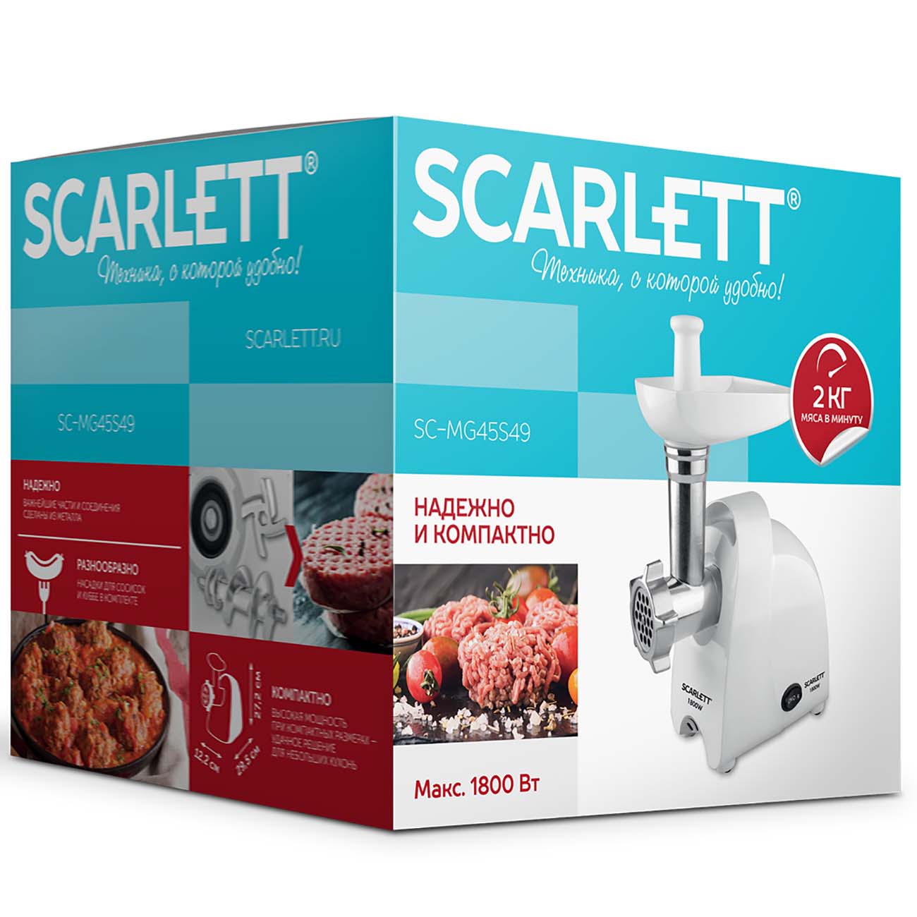 Вы можете купить Электромясорубка Scarlett SC-MG45S49 в магазинах М.Видео по доступной цене. Электромясорубка Scarlett SC-MG45S49: подробное описание, фото и отзывы реальных покупателей, характеристики, возможность скачать инструкции и подобрать аксессуары.