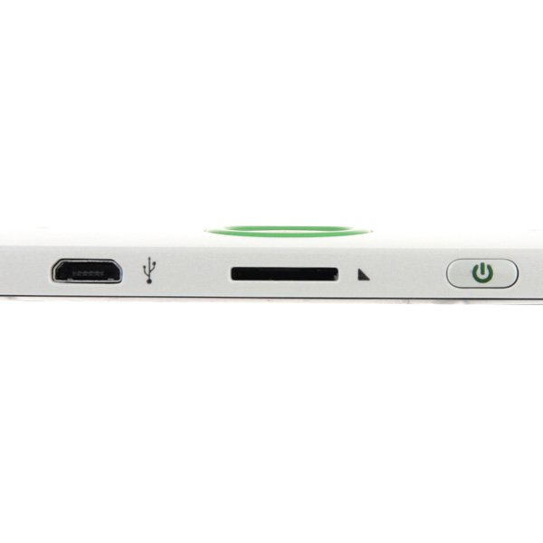 На передней панели есть основной черно-зеленый джойстик и две кнопки. С торца (если так можно говорить о гаджете), находится кнопка вкл/выкл, вход для зарядки и подключения к компьютеру и вход для карты microSD, microSDHC.