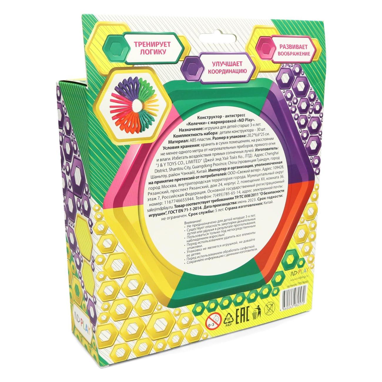 Электронный конструктор ND Play «Колечки» TY876043 предназначен для детей старше шести лет. Антистресс игрушка подойдет как для мальчиков, так и для девочек. Конструктор тренирует логику и мышление, улучшает координацию, развивает воображение. Игровой набор состоит из 30 разноцветных деталей, которые соединяются между собой. Элементы игрушки выполнены из качественного пластика и безопасны для детей. Габаритные размеры упаковки составляют 25х6,5х20 см. Вес — 0,48 кг.
