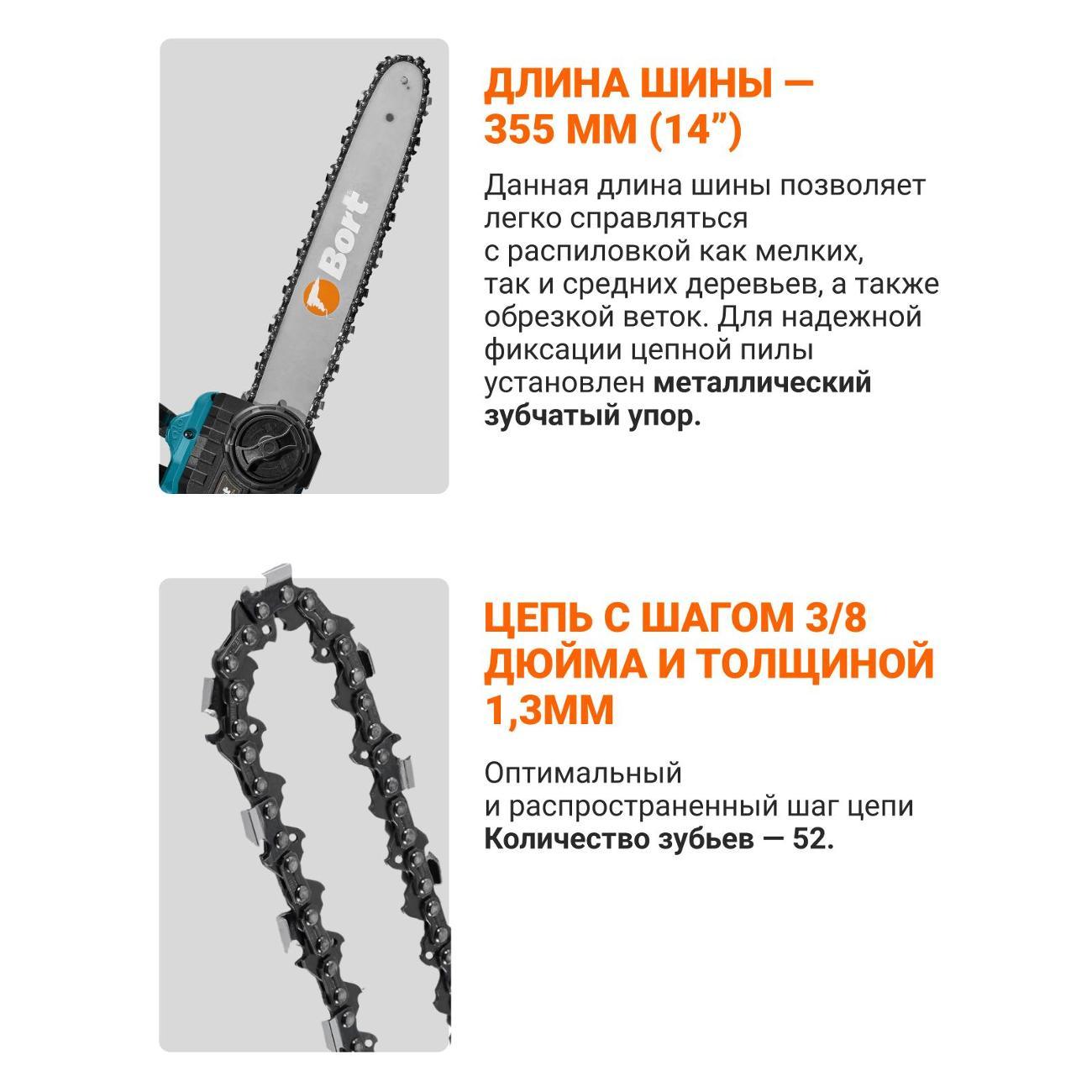 Отличный вариант за бюджетную цену, а в М.Видео вышло даже выгоднее популярного китайского аналога из-за рубежа. В коробке отвертка, которой нужно прикрутить одним винтом регулировочное кольцо к шине, больше она долго не понадобится. Чехол шины в комплекте, по отзывам раньше не клали,- благодарен производителю за улучшение комплектации. Работает только от пары аккумуляторов. Две скорости, регулировки оборотов курком нет. Защита для остановки цепи работает.